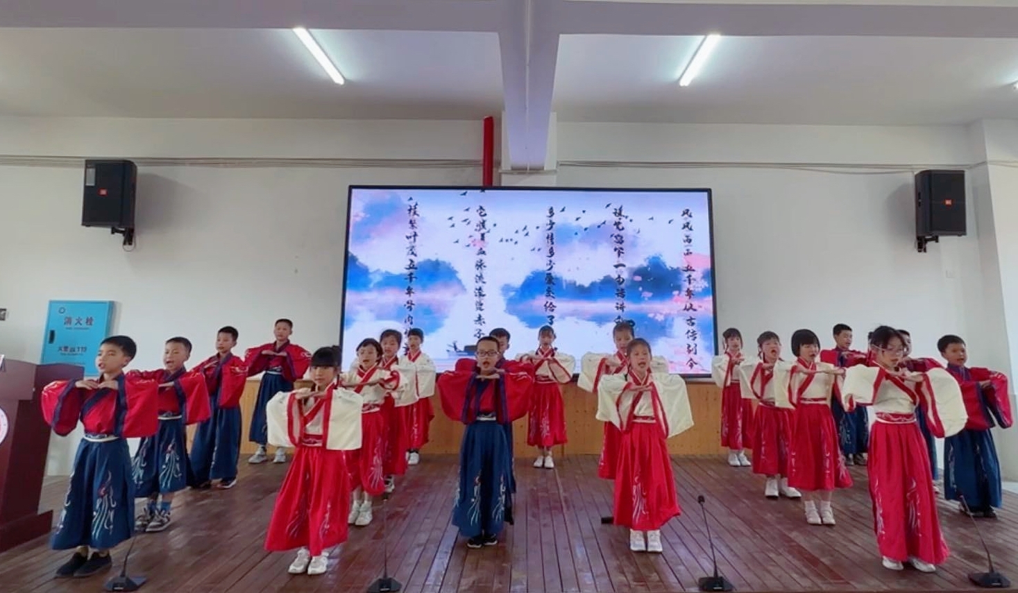 二年级的学生们带来经典诵读《唐诗联唱》和开场舞《中华孝道》,把师生们带入到传统文化的世界,使他们充分感受到中国经典文化的韵律之美。