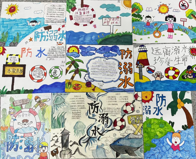 在手抄报的制作中,同学们展开想象力,以学校宣传教育及主题班会上学习到的防溺水知识为主要内容,用图文并茂的形式展现出来。手抄报主题突出、设计独特、色彩丰富,充分展现出了学生的动手能力以及对防溺水安全知识的储备。
