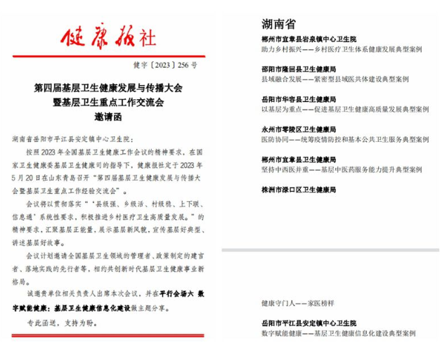 健康报社邀请安定镇中心卫生院出席并作主题经验分享,湖南省仅两家卫生院受邀