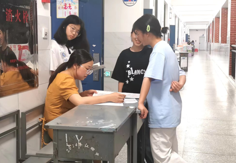 在年级组的统一部署下,各班教室外专门放置了两张空桌椅,各学科老师主动、及时为学生释疑解惑,尽管天气闷热,但师生协力攻关的热情丝毫不减,一帧帧温馨的镜头令人为之感动。在高考最后冲刺的关键阶段,老师们任劳任怨,坚守岗位,除辅导学生知识点和答题技巧外,还主动担负编外班主任的角色,认真做好学生考前思想教育、心理疏导、生活关怀,多角度关心鼓励学生,与重点对象促膝谈心,让他们以最佳的状态投入到紧张的高考备战中,让备考过程不留下遗憾,让立德树人育人理念落到实处。