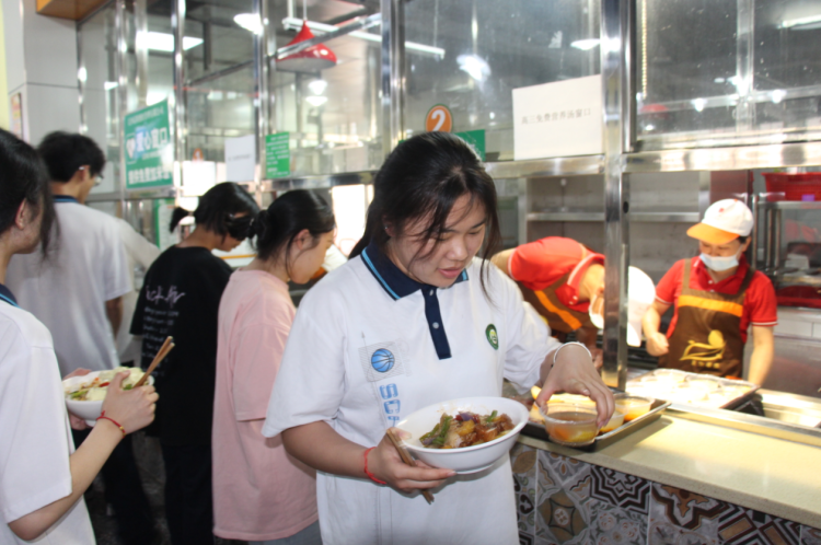 后勤不后,服务先行。该校后勤处认真落实日前召开的高考考前工作协调会精神,抓实食品安全管理和护考关爱行动关键环节。每晚坚持在第二节自习课后为高三师生集体加餐,送来一份份美味和温暖。做到每日做到不重样,如学生酸奶、面包、水果、包子等。学校负责人带领相关管理人员,深入各楼层每一间教室、办公室,将集体的关怀送到每个人的身边,极大地鼓舞了师生静心备战高考、轻松应考的信心。