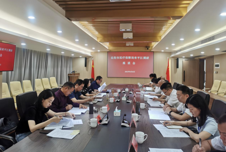 6月6日,岳阳市医保局党组书记、局长陈平,党组成员、副局长陈双平等一行五人到县医保局、县中医院和济寿堂中医药科技有限公司调研中医药传承创新发展和医保队伍建设工作。县医保局党组书记、局长黄明权陪同调研。