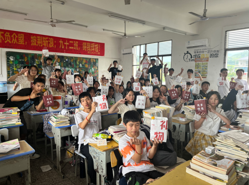 栀子花开,又是一年毕业季。6月16日,平江十中初三年级92班的同学们,都收到了一份来自班主任张姜准备的特别的毕业礼物。班上47个学生都收到了专属于印有他们名字寄语的水性笔、零食、“不负韶华”“诸事顺意”的胸针、金榜题名手环的礼物包。