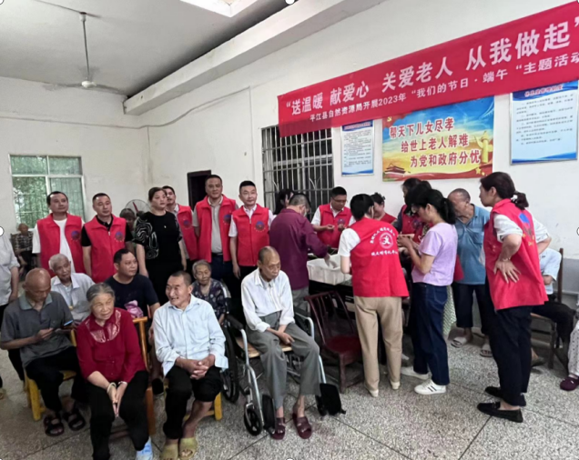 在端午节即将来临之际,为传承中华民族优秀文化,弘扬尊老、敬老、爱老的传统美德,6月20日,县自然资源局副局长曾湘林带领局志愿服务团队来到加义敬老院开展“我们的节日·端午”献爱心志愿服务活动,提前为敬老院的老人送上节日的问候和祝福。