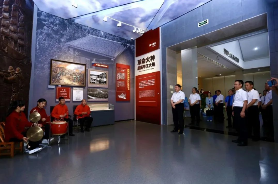 调研过程中,大家除了认真聆听讲解,仔细端详一件件展品、一幅幅珍贵的老照片,全方位了解了彭德怀、滕代远等革命先烈领导平江起义的英勇事迹,感悟百年历史的辉煌与厚重时,特别仔细地观看了非遗中心沉浸式节目表演。
