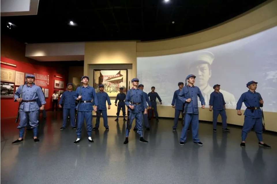 非遗中心演员们沉浸式演绎着一幅幅生动的历史画面,配乐朗诵《秋收起义》《平江起义歌》、平江民歌《要当红军不怕杀》让革命先辈那前赴后继的大无畏精神和视死如归的革命情怀再现在大家眼前,革命先烈们不怕牺牲、英勇顽强的革命精神深深震撼和激励着现场的每一个人。