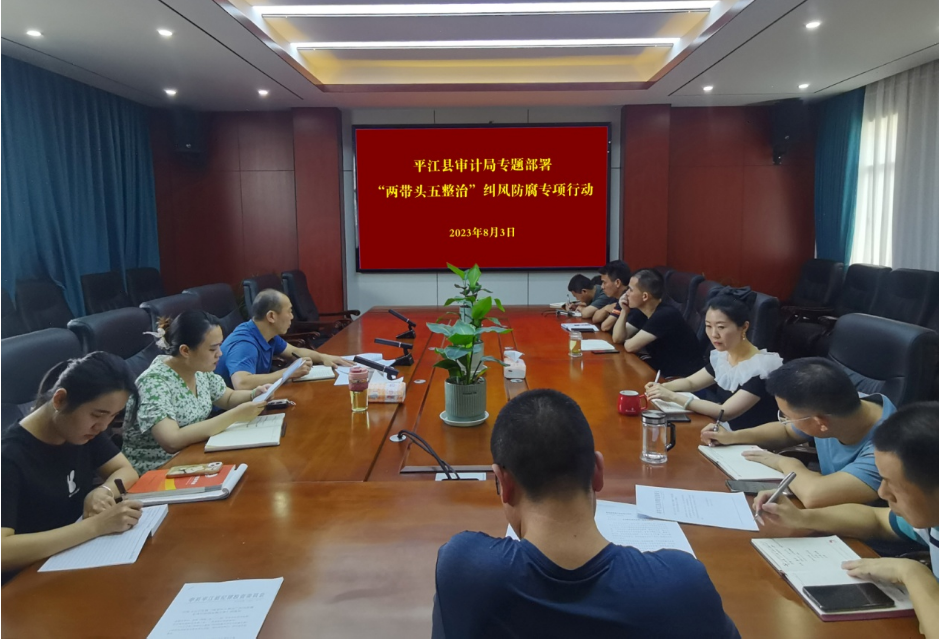 8月3日,县审计局召开“两带头五整治”纠风防腐专项行动工作部署会,班子成员、股室负责人参加,会议由局党组书记、局长张廉波主持。