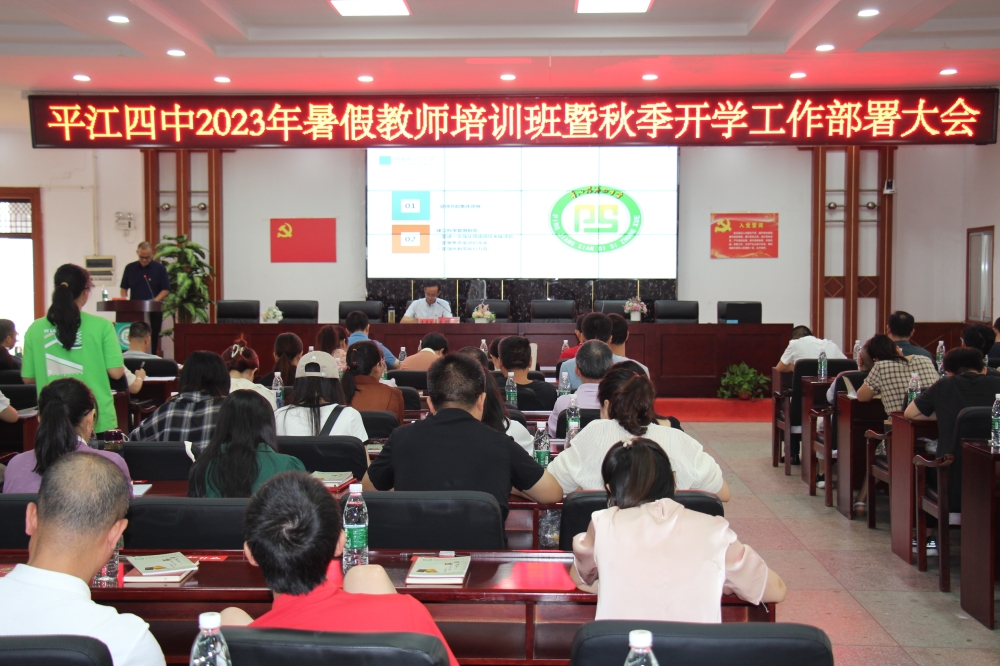 秋意渐浓,征程再启。借力全县教育系统管理体制改革的东风,满怀着期待和憧憬,8月29日至30日,平江四中举行了为期两天的暑假教师学习班暨秋季开学工作部署动员大会,180余名教职工参加。会议由新任校长李奇龙主持,党总支书记陈学究作大会主题报告,回顾上半年教育教学主要工作,总结成绩经验,分析存在不足,安排部署秋季开学工作和下半年学校工作计划,为迎战新学期凝心聚力、鼓劲扬帆。