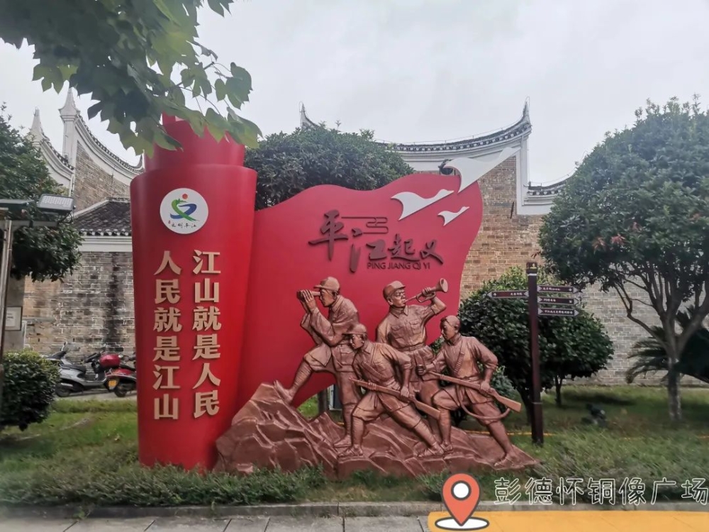 踏入天岳广场、彭德怀铜像广场,一处处设计精美的宣传标语与景观雕塑分布在各个角落,设计融合平江红色文化,因地制宜,突出广场不同特色。在人流量多的广场设置各具特色的景观小品,市民一进入便能感受到浓烈的创文宣传氛围,既传播了文明,亦增添了视觉上的艺术享受。