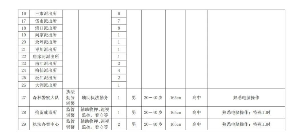 资格初审、复审:对报名人员的资格审查贯穿招聘工作全过程,包括报名时资格审查、聘用时资格终审,由报名人员户籍地派出所、县公安局相关部门同步进行。