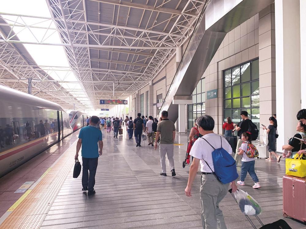 中秋、国庆假期即将来临,不少人已开始提前收拾行囊,踏上出行的旅途。今日,记者从岳阳火车站获悉,今年铁路黄金周运输时间为9月27日至10月8日,为期12天。铁路部门预测,由于“双节”假期叠加,各地旅游、探亲、学生出行流的需求将在黄金周全面释放,铁路出行旅客总量将大幅提升。为应对即将到来的客流高峰,岳阳火车站近期将增开13趟南下始发临客列车。根据高铁岳阳东站9月22日发布信息显示,高铁岳阳东站也将加开140趟高铁,其中包括多趟夜间开行的“红眼”列车。