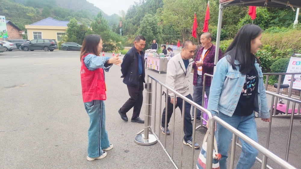 ▲10月3日,长寿秘境工作人员引导车辆进入停车区。