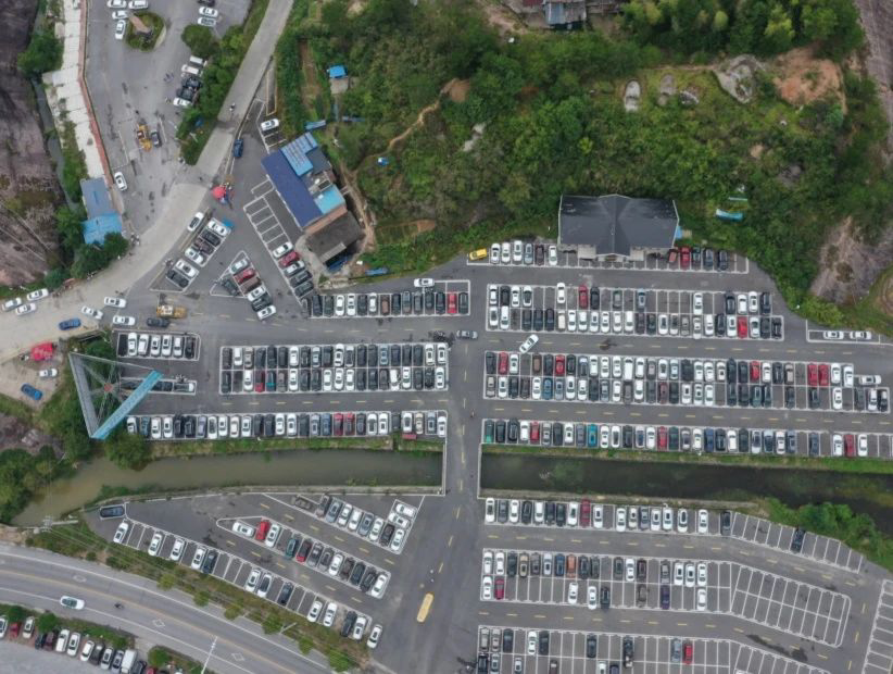 ▲10月1日,在天岳石牛寨景区车辆规范停放。