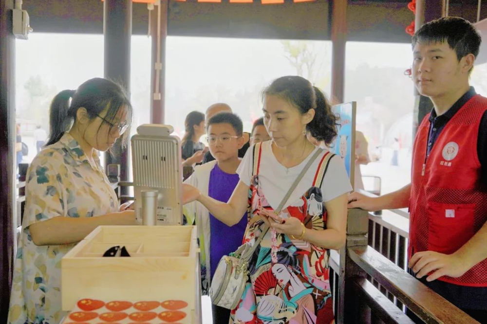 天岳幕阜山推出“文明旅游公益行”活动,游客在游览时随手拍摄文明旅游行为,即可参与抽奖活动,获取五角星纪念胸章,引导市民游客争做文明旅游的践行者、传播者。