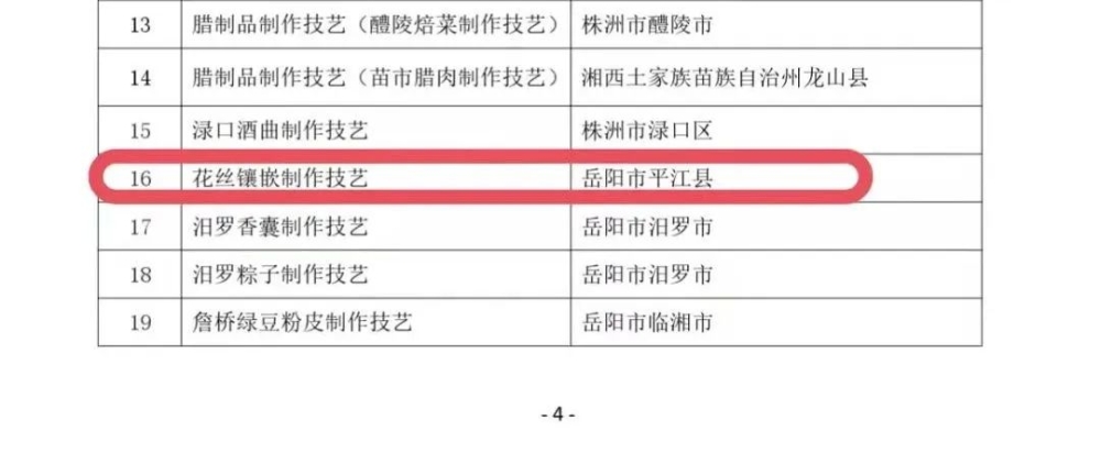 我县花丝镶嵌制作技艺入选湖南省第六批省级非物质文化遗产代表性项目名录的公示名单