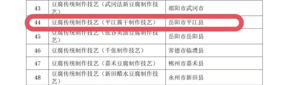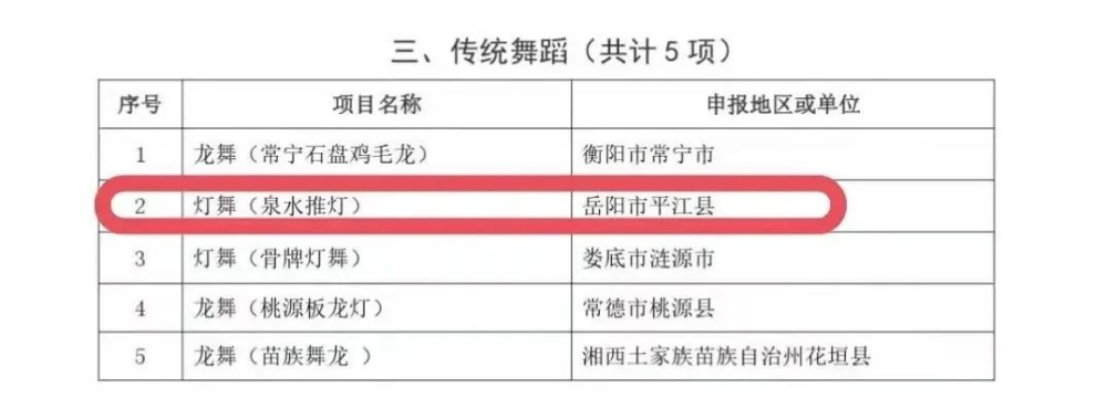 灯舞(泉水推灯)、豆腐传统制作技艺(平江酱干制作技艺)入选湖南省省级非物质文化遗产代表性项目名录扩展项目名录的公示名单