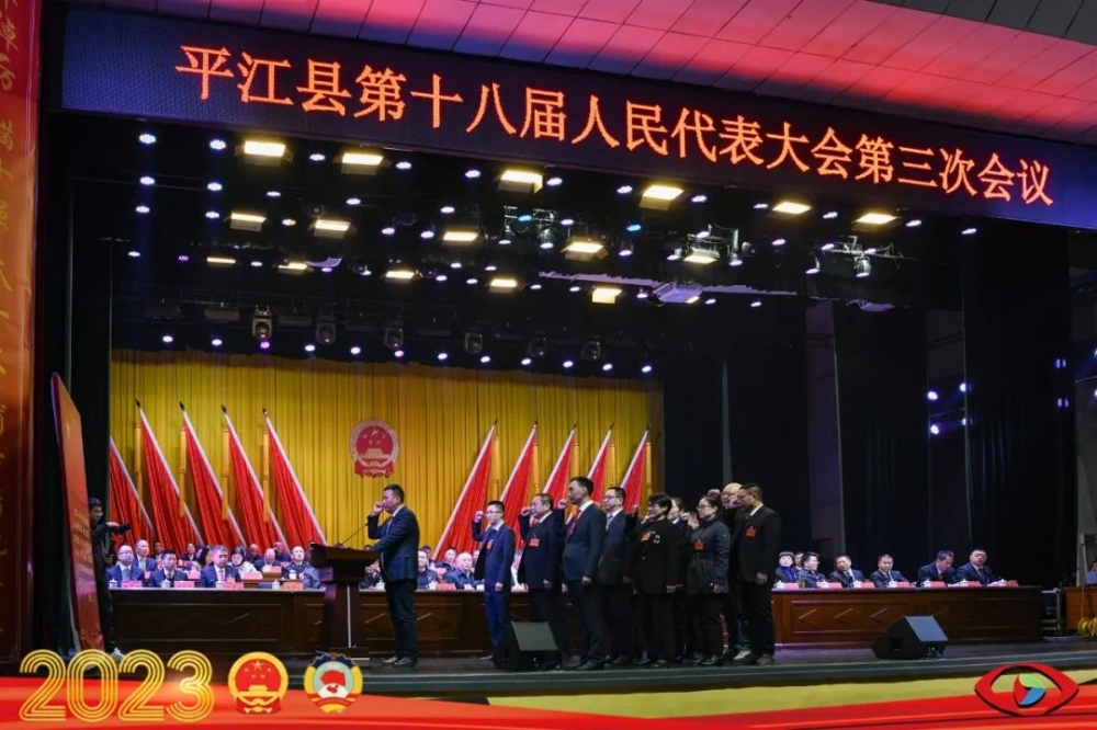 12月21日,平江县第十八届人民代表大会第三次会议圆满完成各项议程后,在县人民影剧院闭幕。