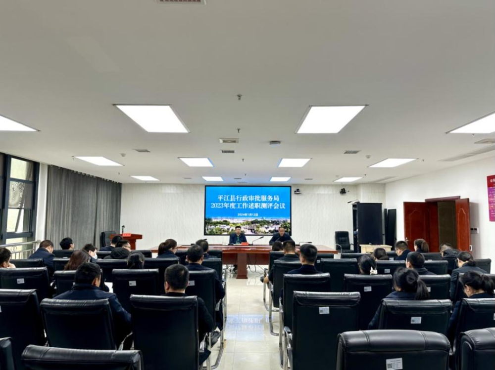 会议宣读《平江县行政审批服务局关于做好2023年工作人员年度考核工作的通知》。随机抽取10名干部依次上台述职,每一位述职干部立足自身工作职能,亮成绩、定目标,对2023年工作情况进行了总结汇报,对2024年工作思路进行了谋划。述职结束后,进行工作人员年度考核民主测评。