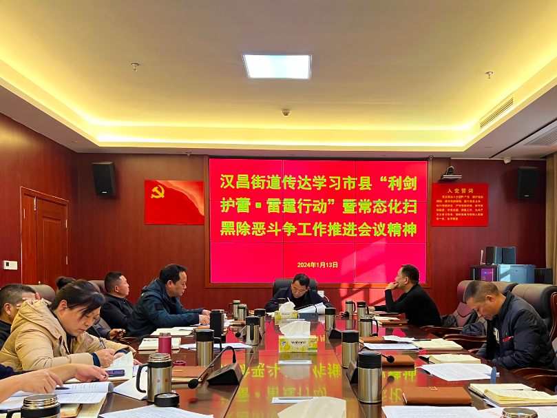 1月13日,召开班子会专题研究部署,制定出台《汉昌街道2024年度利剑护蕾工作方案》,成立了由党工委书记和办事处主任担任双组长的工作领导小组。1月15日,在全街道召开"利剑护蕾·雷霆行动"集中整治工作部署会,各部门负责人、社区(村)书记向党工委书记张创国递交了责任状,纷纷表示将以最坚决的态度、最扎实的作风、最有效的措施,坚决打赢"利剑护蕾·雷霆行动"这场硬仗。