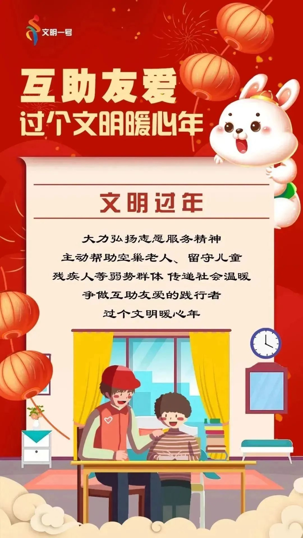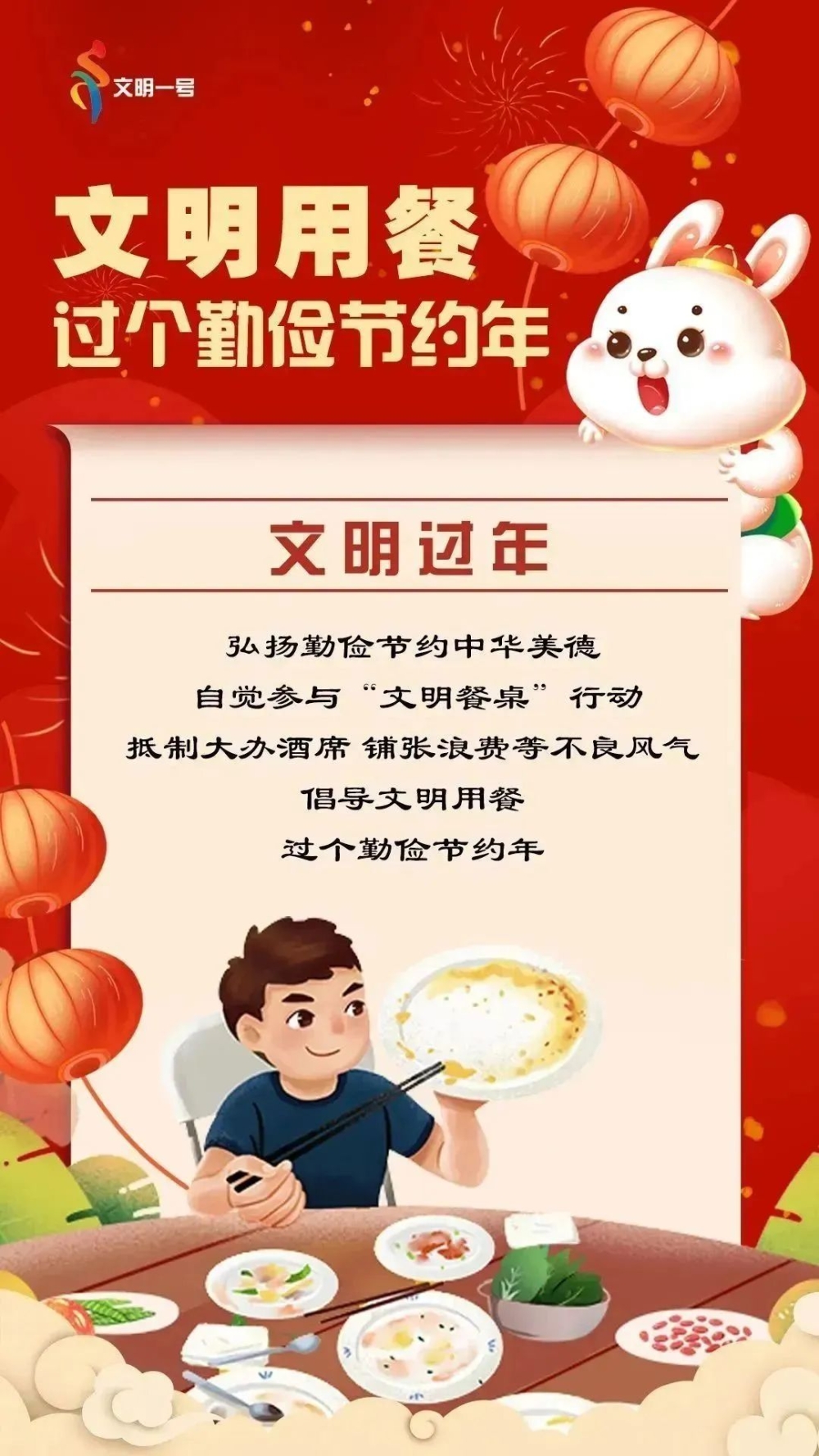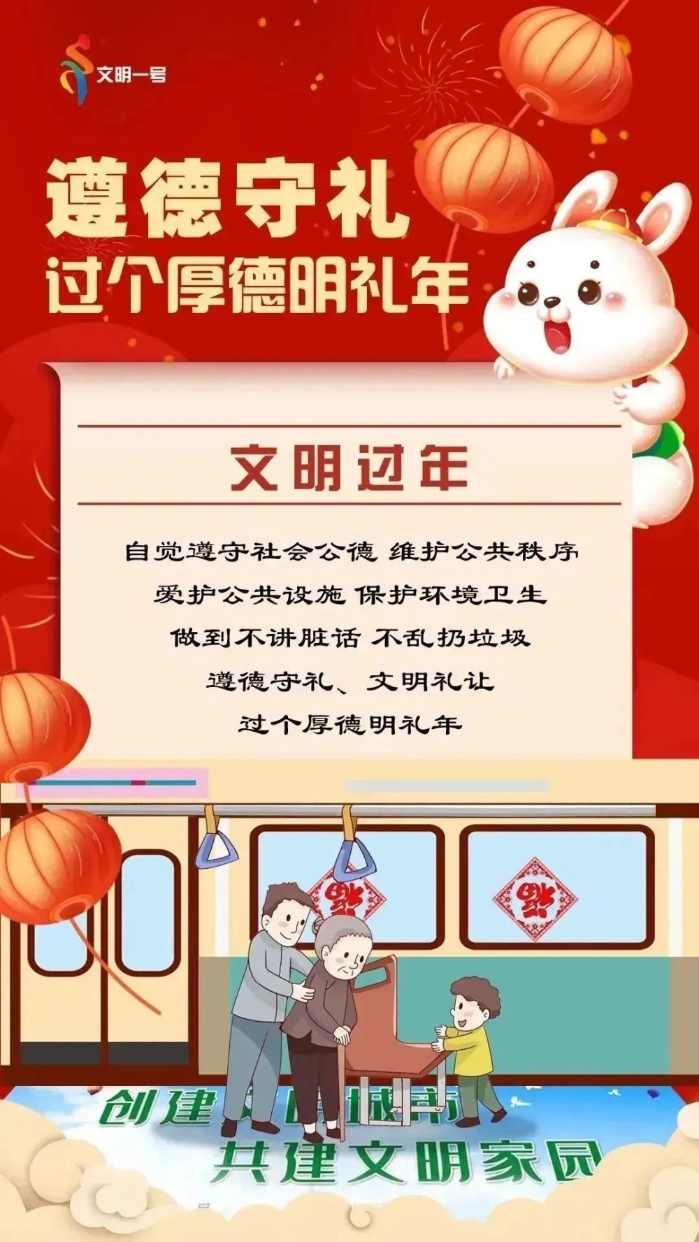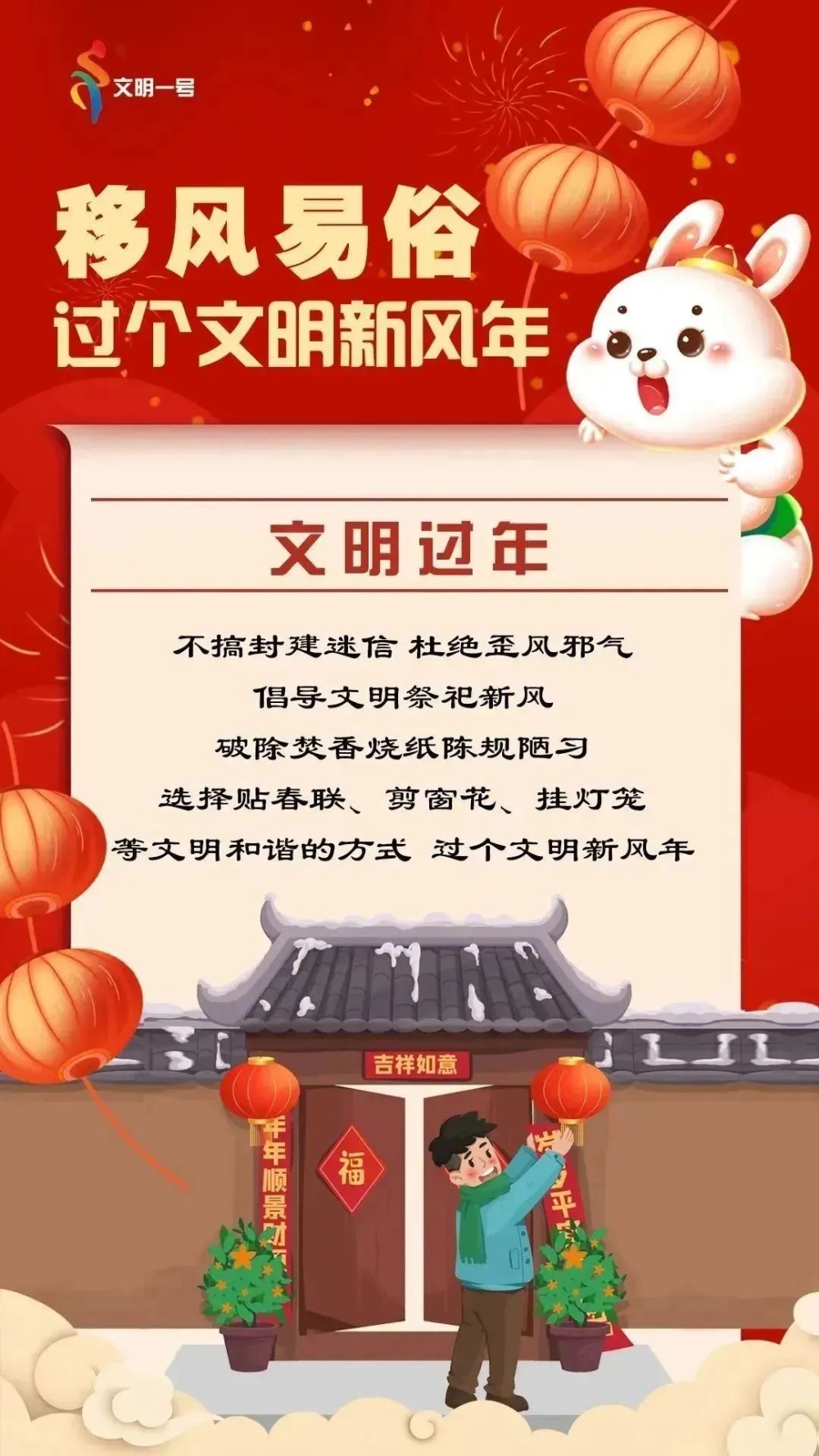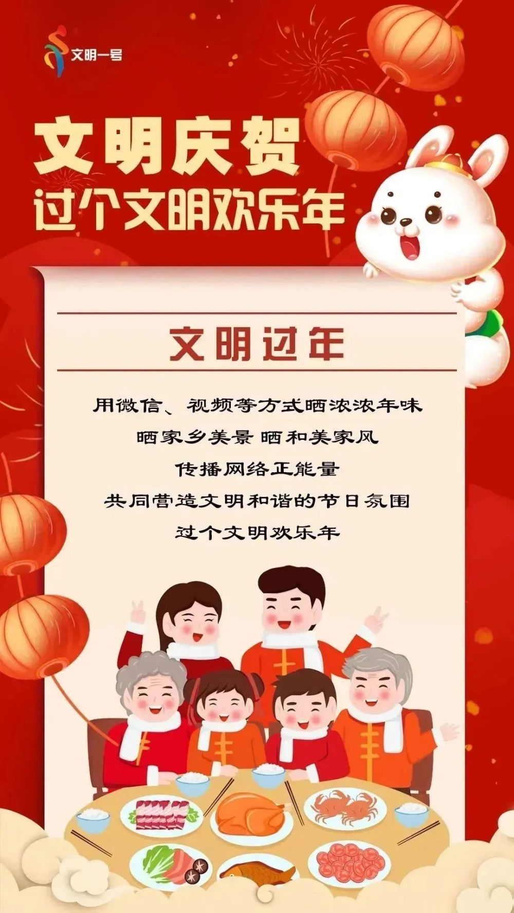 过节的方式多种多样,文明过节的习惯却永不过时。让我们一起携手同心,从小事做起,从现在做起,争当文明新风的传播者,共同度过一个欢乐祥和的新春佳节。