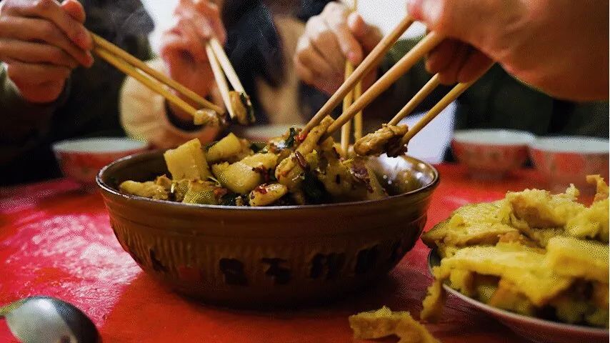 “解年猪”的重头戏是吃“年猪宴”,图的就是一个热闹欢腾。分完肉,来吃“年猪宴”的叔伯姑嫂便都上前来帮忙,拿着新鲜猪肉来到厨房,开始拾柴烧火、切菜、剁肉... ...筹备大家最期待的“年猪宴”,欢声笑语好不热闹。