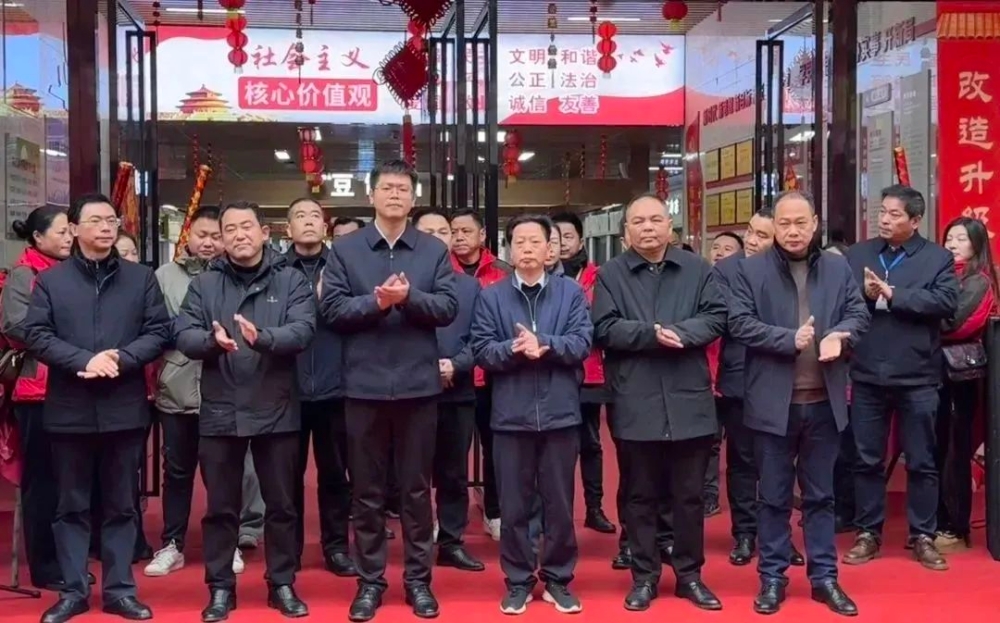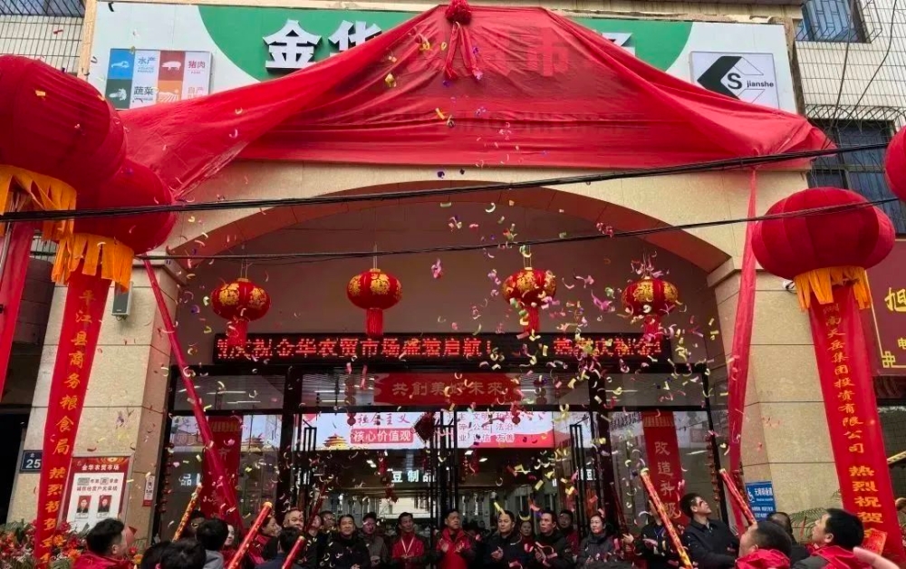▲县委常委、宣传部长田浩,县人大常委会副主任李立明,副县长阳郑,县政协副主席郑湘平为金华农贸市场揭牌。