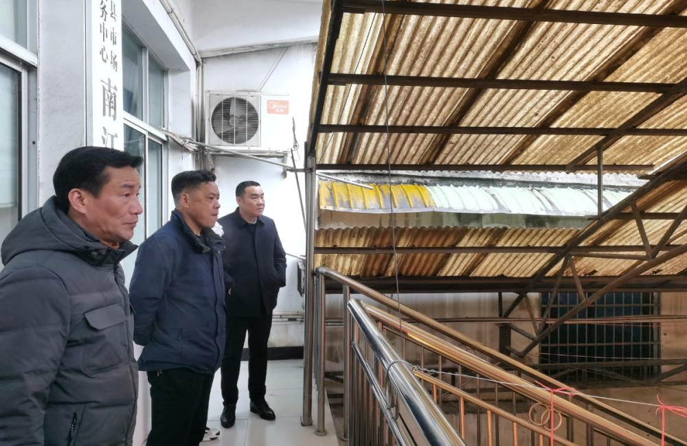 2月6日,中心主任刘高文亲自带队,对城区七大钢结构顶棚农集贸市场及下属安定物流园、南江商贸城进行全覆盖式巡查排查,坚决有效防范化解风险隐患。每到一处,刘高文都会耐心叮嘱市场负责人,要严格值班值守和消息报送机制,加强安全巡查,及时排查消除风险隐患,坚持安全第一方针,密切关注气象变化趋势,遇到突发情况时第一时间响应、第一时间处置到位,切实守护人民群众生命财产安全。在三阳菜市场和东街菜市场,还针对春节期间市场保供稳价工作进行了具体调度。