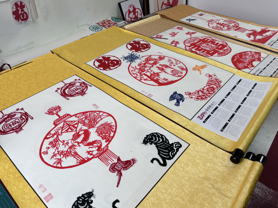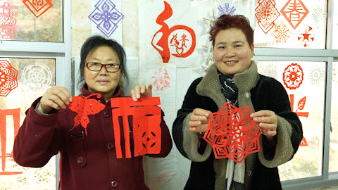 剪纸让红色的喜庆氛围游走在家家户户之间,也让非遗艺术在剪刻的痕迹中焕发活力。