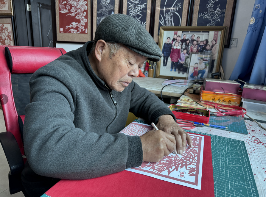 ▲剪纸爱好者陈旋风