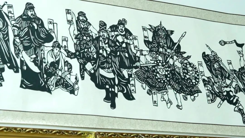 大家围坐在一起,一边聊着家常一边舞弄着剪刀。翻转、折叠、裁剪......不一会儿,寓意为“年年有鱼”“暴富”“福气满满”等各种图案的窗花跃然纸上,寄托着大家辞旧迎新、接福纳祥的愿望。村民黄女士说:“我们村男女老少基本都会剪纸,过年的时候大家经常聚在一起剪纸,将自己的作品贴在家里,既美观又有意义。”另一位村民陈景根做出了一幅7米长的《清明上河图》,目前他正在完善剩下的工程。