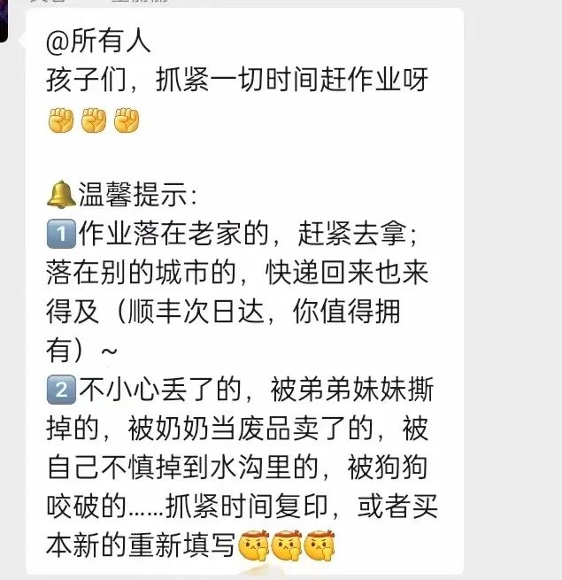 孩子们为了完成作业,熬夜奋笔疾书,全然不顾“工程质量”,疯狂填空,而为了督促孩子高质量完成作业任务的家长们