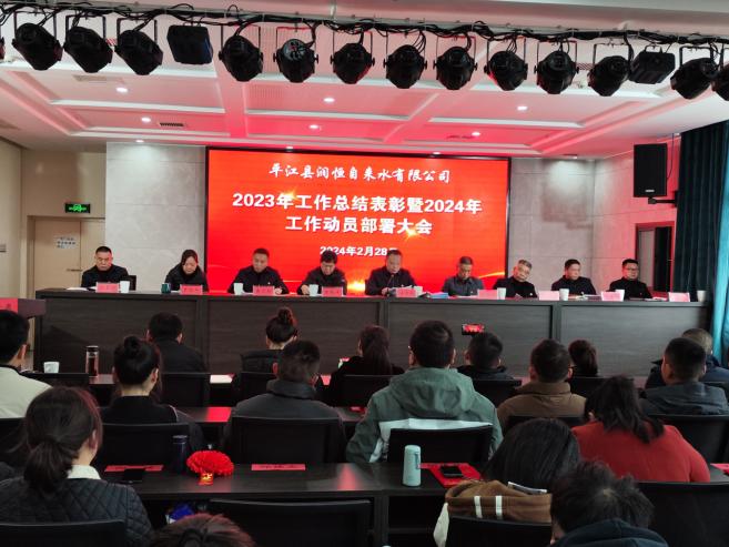 春风浩荡满目新,扬帆奋进正当时。为全面总结2023年工作,表彰先进,鼓舞士气,动员部署2024年工作,2月28日上午,县润恒自来水有限公司在供水技术服务中心8楼大会议室,召开2023年工作总结表彰暨2024年工作动员部署大会,全体干部职工共220余人参加,会议由公司党委书记、董事长李照球主持。