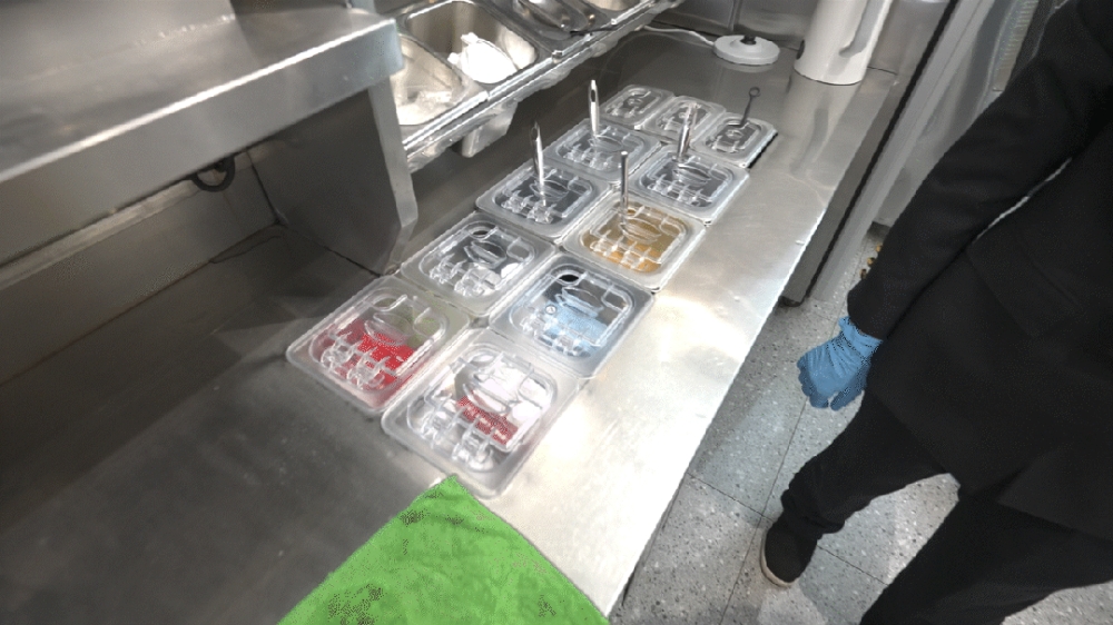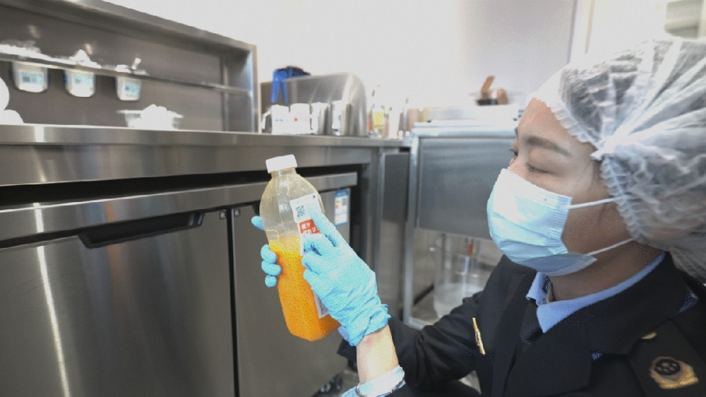 正当记者准备收拾机器结束拍摄时问题出现了!检查人员在厉厉茶、甘柠季发现,用于装原材料的分装盒上均未贴上或未在显眼位置粘贴标签、标识日期。执法人员表示:开封后的食物应在标签上详细标识开封日期以及最长使用期,若超过最长使用期的原材料则必须立即销毁,只有这样才能保证饮品的安全、新鲜和可口。于是执法人员立即责令其进行现场整改。