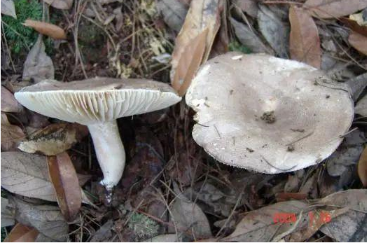 “灰伞伞、白杆杆”,与可食用的红菇属中的其他种类如稀褶红菇、密褶红菇外观极为相似,很难从外观形态上将它们区分开来。需要专业人员结合显微镜及分子生物学鉴定手段才能进行准确鉴别,建议这类菌子最好不要食用,亚稀褶红菇中毒易导致横纹肌溶解症。