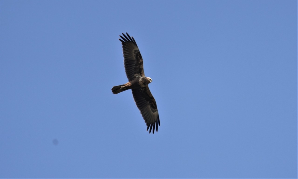 中型猛禽,体长50~60厘米。雄鸟头顶至上背白色,上体黑褐色,下体近白色,喉和胸具黑褐色纵纹。雌鸟暗褐色,头顶至后颈皮黄白色,具锈色纵纹;飞羽暗褐色,尾羽黑褐色,外侧尾羽内哃肉桂色。