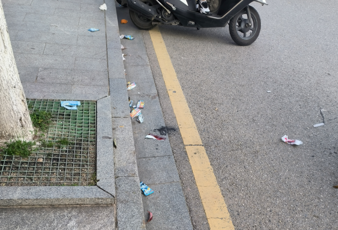 3月29日星期五下午,记者来到启明中学校门口,发现乱扔垃圾的现象较为严重,过往车辆带起的强烈旋风,刮得地上的垃圾遍地都是。