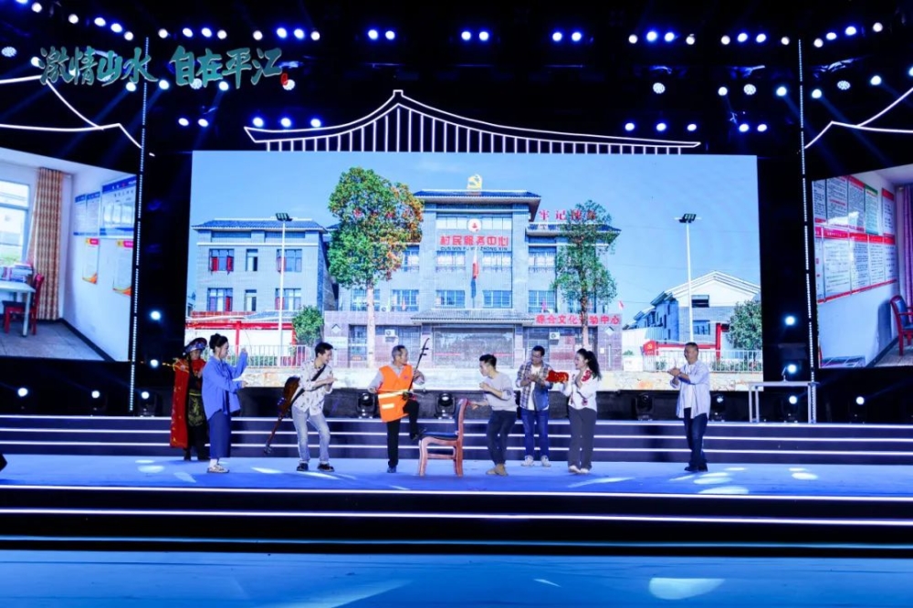 蒙蒙春雨中,一首节奏铿锵、粗犷浑厚的《龙舟号子》响彻云霄,点燃了在场所有观众的热情,这场接地气、聚人气的春季“村晚”正式拉开序幕。本次春季“村晚”分为春晓、春色、春晖三个表演篇章,小品《我要上村晚》不仅展现出平江劳动人民对文娱生活的热情,更生动幽默地体现了平江的特色乡村文化;节目《上春山》的表演者是来自安定镇大桥中学的薪火乐队,孩子们真诚淳朴的音乐再次在“村晚”舞台上大放异彩;还有平江民歌、平江花灯戏、幕阜武术、通城拍打舞、修水民歌等独具“湘鄂赣”特色的非遗节目轮番上演,博得现场观众的阵阵欢呼与喝彩。