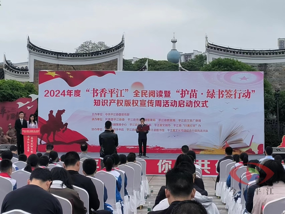 4月23日是第29个世界读书日,我县举行2024年“书香平江”全民阅读暨“护苗•绿书签行动”、知识产权版权宣传周活动启动仪式,县委常委、宣传部长田浩出席并宣布活动正式启动。