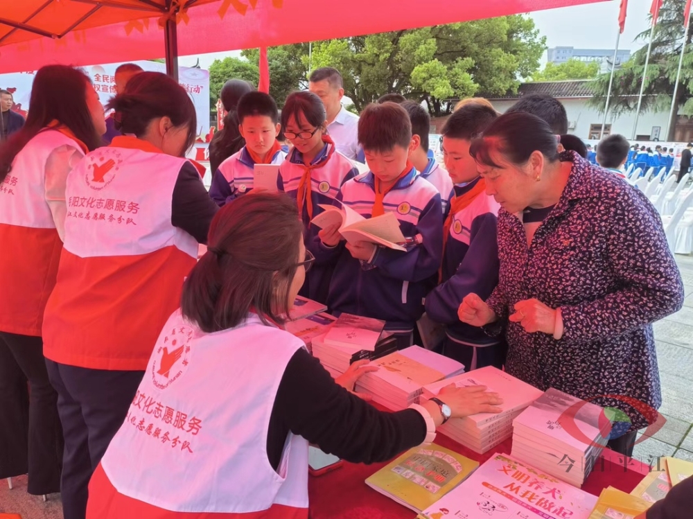 启动仪式结束后,现场开展了“倡导全民阅读·建设书香平江”全民阅读暨爱心图书捐赠活动,其中还特别开设了党报党刊阅读专区。在以文明创建、全民阅读、“扫黄打非”、知识产权保护为主题的宣传展台展板前围满了前来咨询的群众和学生,志愿者们向他们发放相关资料与倡议书,普及知识产权、“扫黄打非”等相关知识,倡导开展全民阅读活动,提高知识产权保护意识。