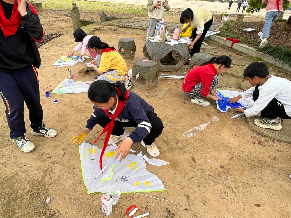 接着,同学们被分成了几个小组,开始了热烈的讨论。他们围绕着如何构图,如何给风筝涂色展开了思考,用一笔一画,一色一调在风筝上绘出心中那抹色彩,“看,我的风筝漂亮吧!”学生们相互交流,相互欣赏,共同沉浸在绘画的乐趣中。