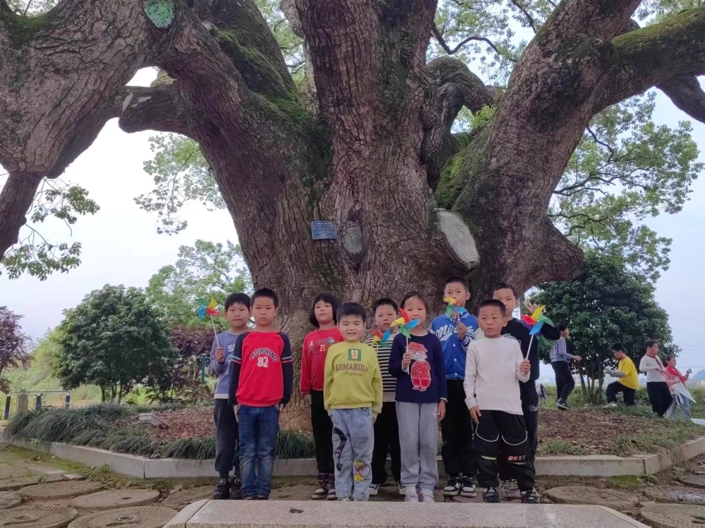 出发前,校长刘婧为孩子们讲解有关风筝的名言、谚语、古诗文,更加全面地了解了我国的风筝文化。四十分钟后,在学校的组织下,终于来到三市镇天湖村千年古樟树旁。