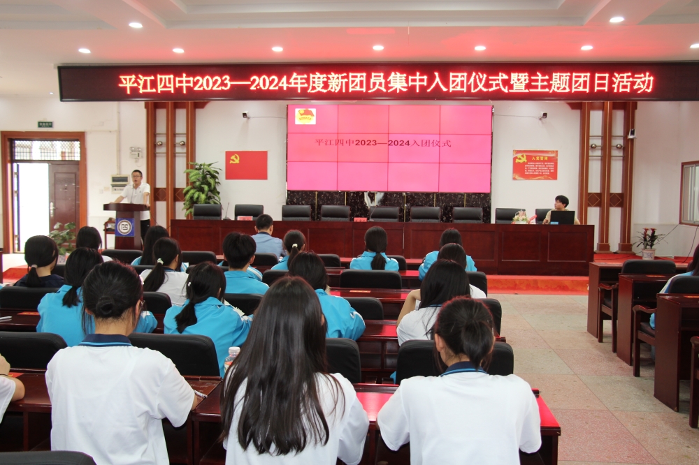 岁月恰芳华,理想正青春。为深入学习贯彻习近平新时代中国特色社会主义思想和习近平总书记关于青年工作的重要指示精神,传承和弘扬五四精神,庆祝建团102周年,激励共青团员听党话、跟党走、感党恩,5月9日,平江四中举行了2023-2024年度新团员集中入团仪式暨主题团日活动。