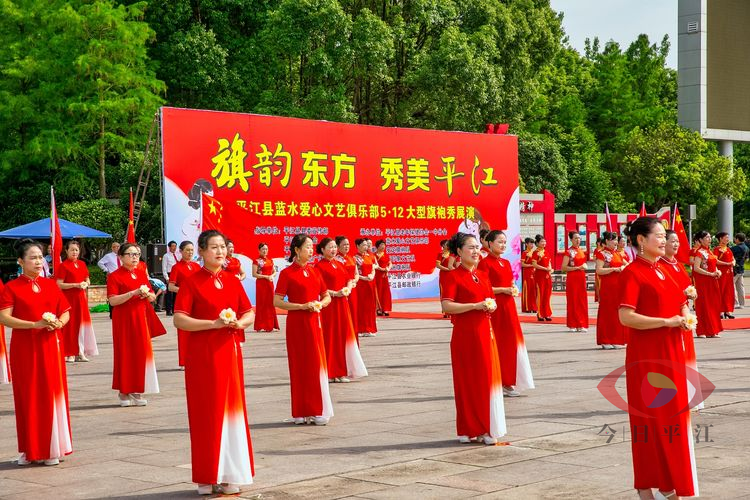 活动中,来自全县各行各业、各个年龄段的女性身着红色旗袍,迈着轻盈步履,伴随着悠扬乐曲,不紧不慢,婀娜摇曳,从万汇景观桥出发,在初夏的绿荫路上优雅前行。靓丽旗袍展现着优雅的身姿,举手投足间尽显古韵风情,点缀着平江的景致,成为了一道亮丽的风景线。