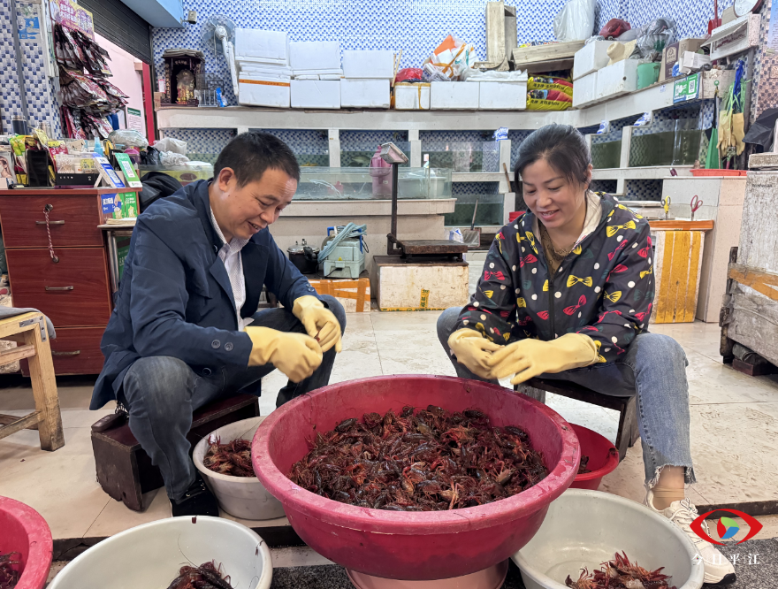 “去年年底政府免费开办了电商培训班,都是实打实的干货,我们参训的实体户都受益匪浅。”彭时金便和丈夫在开店之余,利用线上平台直播售卖龙虾,这一举不仅让她稳住了销量,还引来了许多外地客户。说完,她又接到了线上订单。眼看着生意越来越红火,她的笑容中又增添了几分对未来的期待。