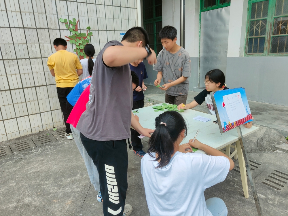 “你是我的眼”“今天,你微笑了吗?”“我眼中的你无与伦比”……5月29日下午,梅仙镇柘庄中学篮球场上,该校七八年级的学生们正排成8个长队,兴高采烈地参加学校政教处和心理咨询室联合举办的心理游园活动。