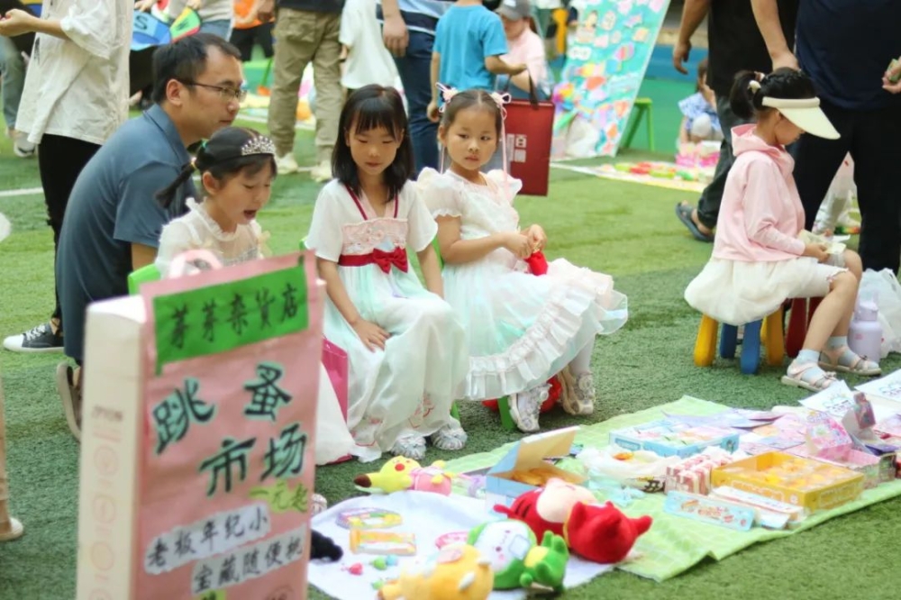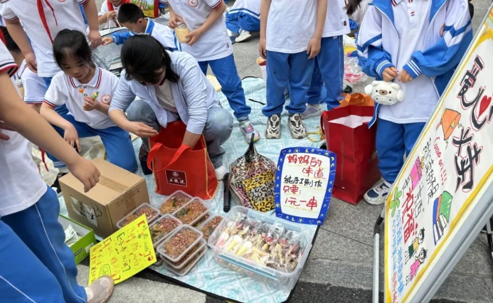 摊位的“小当家”立起自家创意“招牌广告”,使出浑身解数来吸引顾客;小顾客们则穿梭于各个摊位,认真挑选喜欢的物品。每一笔成功的买卖,都代表着一份爱心的传递,整个校园充满了欢声笑语。