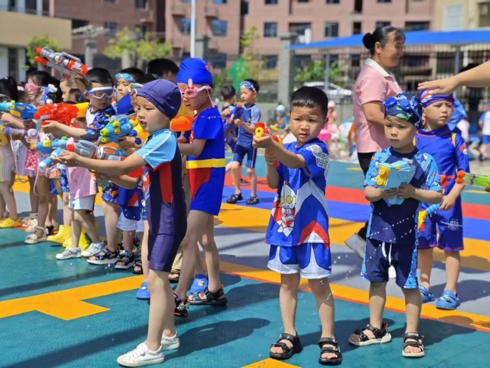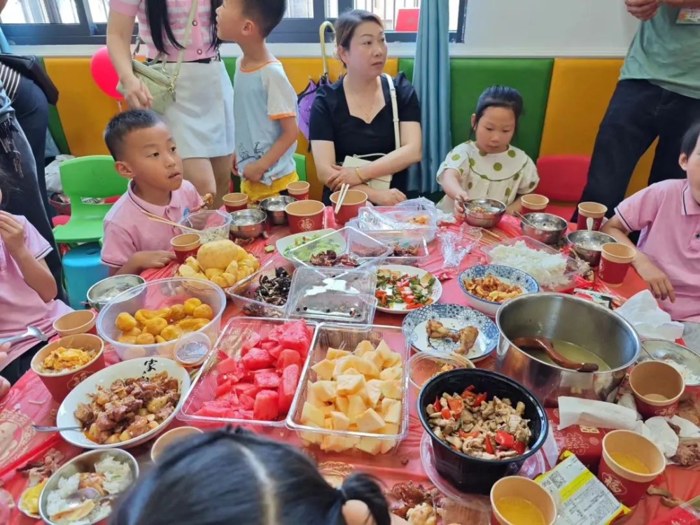 5月29日,在龙门镇中心幼儿园,一场新鲜有趣的“打水仗 吃大席 庆六一活动”吸引了众人的视线。活动现场,孩子们身穿泳衣、手持水枪,尽情地在水中嬉戏,欢笑声、打闹声不绝于耳。结束了激烈的水仗,一场丰盛的大席在园内摆开,家长孩子围坐在一起品尝美食,亲子之间的感情在这一刻更加紧密。