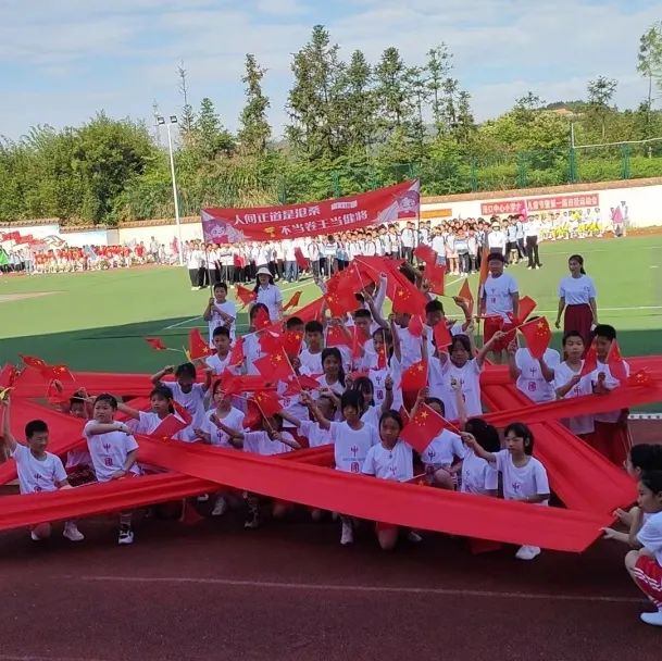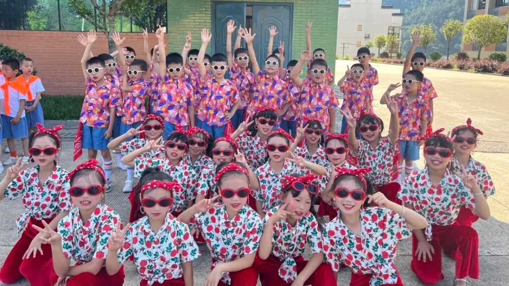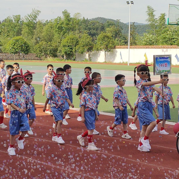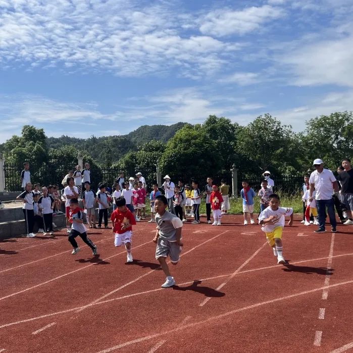 除了各式有趣、好玩的游戏,运动会也是“六一”必不可少的活动。在浯口镇中心小学的亲子运动会现场,小萌娃们还精心准备了有趣的创意开幕式表演,加油呐喊、欢声笑语……响彻校园。
