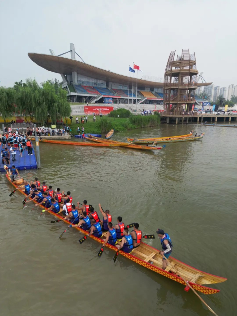 △6月3日,平江浯口龙舟队在汨罗市进行赛前训练