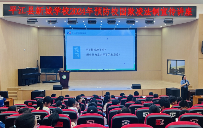 为防止校园霸凌,防止性侵害,提升学生的法律意识与法律素养,让学生能更好地懂法、守法、用法,近日,新城学校邀请了县人民检察院检察官张典进行现场讲座,同步直播为四千余名学子送上了一堂生动有趣的预防校园欺凌教育讲座。